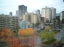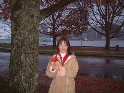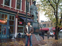 | 朝のバンクーバー町並み | 海沿いにお散歩・・・寒い!! | ギャズ像の前で |