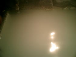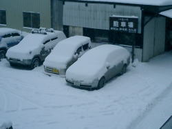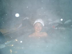| 雪の中の露天風呂 | 露天のお湯は乳白色 | 車は雪まみれ |