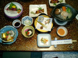 | 夕飯 | いただきま〜す! | 温泉の後の、ビールがうまい |