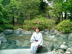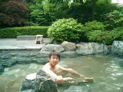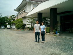 | 宿の庭園露天風呂 | 朝風呂は気持ちいい〜 | 宿の前で |