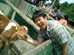 | 七つ森ファミリーの前で | かめ丸とSho | かめ丸のアップ、まつ毛がかわいい! |
