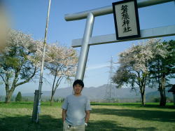 | 神社の鳥居の前で | Takaも記念撮影 | 久しぶりの自転車に嬉しそうなSho |