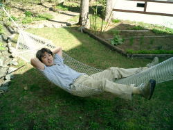 | 軽快に?走ってゆくSho | 宿のブランコに乗って | 宿のハンモックで一休み |