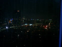 | お台場の観覧車から見る夜景 | あいにくの雨でぼやけた景色 | ライトアップされた観覧車 |