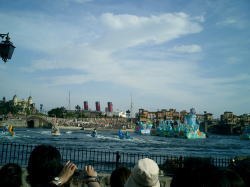 | 水上パレード | 港からの風景 | ミッキーの銅像と一緒に |