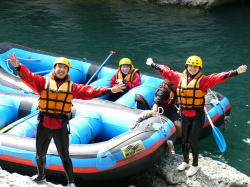 | 朝7時頃自宅出発。 ↓ 水上の「水紀行館」に到着。昼食をとって、裏手の川でしばし休息。川の水はとてもきれいで冷たくて気持ちが良かった。 ↓ 予約していた“サミットアドベンチャー”のアウトドアステーションへ到着。ウェットスーツに着替えて皆で川へ出発。 ↓ ラフトボートの乗り方の説明を受ける。ボートから落ちた時の乗り方、助け方についてShoが実験台になる。 暑いので、川へ飛び込んで少し泳いだ。ちなみにShoは生まれて初めて川で泳ぐということを体験したのであった。 ↓ ガイドのGOさん、茨城のくりちゃん、はるみちゃん、Taka、Shoの5人で乗り込む。 途中写真撮影の時、ポーズは“かとちゃん、ペッ!”をやることに決まり、いよいよ出発した。 最初は緩やかな流れを抜けていった。しばらくするといくつか立て続けに瀬が出てきて、バシャバシャと水をかぶった。 ↓ 途中で上陸して、キャニオニング(渓谷のなか、自然を体感しながら水の流れといっしょに下っていく)をほんの少しだけ体験する。 ライフジャケットを着けていたので溺れる心配は無かったが、結構スリルがあって泳げないShoはドキドキだった。 ↓ またラフトボートに乗り込み、しばし下る。途中、写真撮影ポイントに到着したので、お約束通り“かとちゃん、ぺっ”を実行。 ↓ 上陸して、岩の上へ登る。希望者のみ岩の上からダイブした。Takaは一番高いところから、Shoは二番目に高いところからそれぞれダイブ。 一瞬の出来事だったけど、なかなかおもしろかった。 ↓ ゴールめざしてボートを漕ぐ。最後ゆるやかな流れのところでくりちゃんがGoさんに川へ落とされ、教えてもらった通りに救助する。 実際には2時間くらいの川下りだったが、あっという間に終わってしまった。ものすごく楽しかった。 ↓ アウトドアステーションに戻ってコーヒーを飲みながら、しばし歓談。 Goさんの話を聞いているうちに、アウトドアの魅力にだんだんと取り付かれる、TakaとSho。 Goさんのお友達がやっているカヌー体験が明日空いていると聞き、早速予約をお願いする。皆さんに挨拶を済ませ、宿へ向う。 ↓ 宿は「清流の宿 たむら」。 民宿なので部屋の雰囲気はいたってシンプルな合宿所みたいな感じだったけど、露天風呂はゆったりとしてとても気持ちが良かった。 貸切で入れるのが何よりの魅力。 ↓ 夕飯は山菜や川魚などを使った、体に優しいお料理。決して豪華ではないが、全ての料理がとても美味しかった。 また、白米が最高に美味しくて2人でおかわりを繰り返し、おひつは空っぽになってしまった。大満足\(^O^)/ ↓ 食後急激に疲れが出たので、バタッと就寝。 |