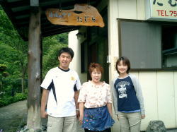 | 民宿たむらの女将さんと | 緊張して、固まるShoの後姿 | 慣れてきたら、楽しい〜。 |