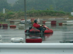 | Shoの会社のAさんの愛車GT-Rが、ついに 100,000kmを突破!これを記念して、営業所メンバーでカート大会が行われた。 Shoは応援なので、飛び入りでTakaが参加させて頂く。 ↓ 13:30に阿見町にある「アップルフォーミュラランド」へ集合。天気は雨の降りそうな曇り空。 ↓ 係りの人の説明を受けて、支度を整えてまずは練習。みんながカートへ乗り込む直前に小雨が降り始め、走り出したらどしゃ降りとなった。 ずぶ濡れ状態で高く水しぶきを上げながら、走った。 ↓ 予選、決勝と進んで行くうちに雨は強くなるばかり。見物していたSho以外は、見事に全員水に入ったかのような濡れようだった。 ↓ 結果は1位:Iさん、2位:Oさん、3位:Aさんとなった。Takaは4位だった。まぁ、初めてにしては良い方かな? ↓ 雨の中で表彰式。大雨のシャンパンシャワーで、記念撮影。 ↓ 用意されていたバーベキューを皆で食べた。悪天候の中でのカート大会だったけど、それなりにみんな楽しそうだった。 ↓ Takaはかなり楽しかったようで、まだ走り足りないという勢いのまま帰宅した。 |