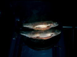 | 鱒のムニエル調理中 | おでん | 鴨肉とネギの串焼き |