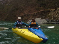 | 新艇にちょっと慣れてきたSho | う〜ん、やっぱりカヌー気持ちいい | 油断してHIDEさんに突っ込むSho |
