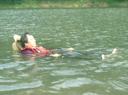 | 水に入って気持ち良さそうなSさん | うれしそうなSho | 余裕をみせる夫 |