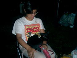 | Takaの膝でちょっと寝てみるコンちゃん | 今にも飛び移りそうなコンちゃん | やっぱりママが一番のコンちゃん |