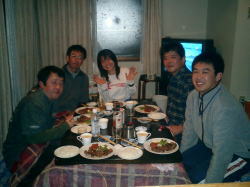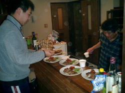 | お料理の準備OK | いっただっきま〜す | JackさんからForeさんへケーキ贈呈 |