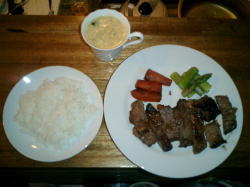 | Foreさん & Sho | シェフFore.h氏と助手のTaka | 農林48号&コーンスープ&ステーキ |