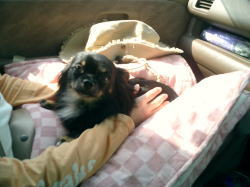 | ちょっと車酔い気味のゴエモン | フリマでヘルメット買いました〜 | 後ろから見てもぴったり! |