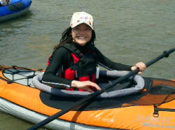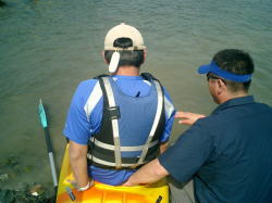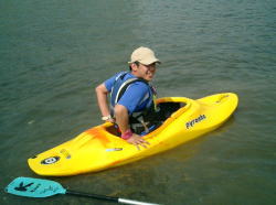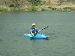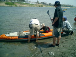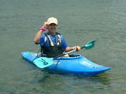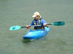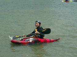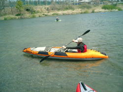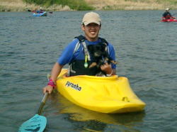 | ZENさんの艇を借用 | Takaも試乗 | スリッパ型のカヌー最高! |