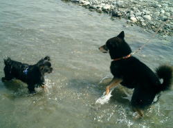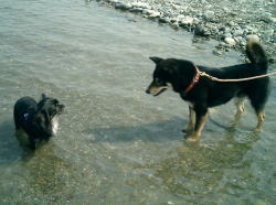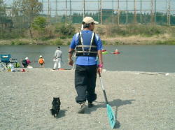 | 試乗艇を探しに行くTaka&ゴエモン | ゴエモン初の川に挑戦 | 抱っこして〜 |