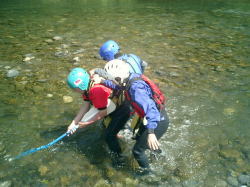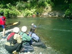 | 三角形を作って川を横断する方法 | 2列になって川を横断する方法 | 本流からエディへ泳ぎ着く体験 |