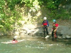 | 流されるT田さんをロープで救助 | 溺れ役のDaiki君を助けるHoriさん | 元気の良いDaiki君 |