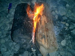 | 梅ワイン美味しかったぁ | 新聞紙で豆炭と薪を作って→ | 少しずつ大きな木へ火を移し→ |