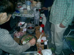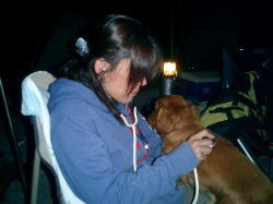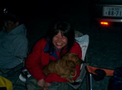 | 焚き火ができましたぁ〜 | 夕食の準備中 | クッキーに聴診器を当てるEriちゃん |