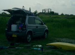 | 片手で楽々持てるJIB | 今日のスタート地点はここ! | 装備を車から降ろして |