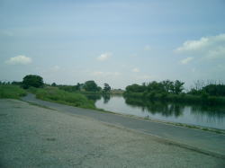 | まったく流れのない小貝川 | Shoも1人で出艇します | まずは下流へ向って |