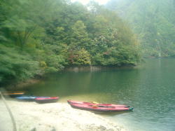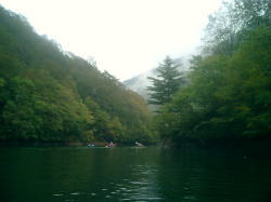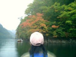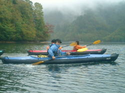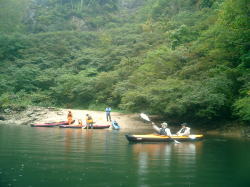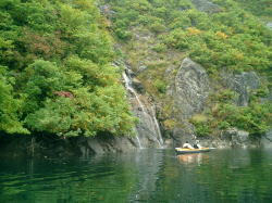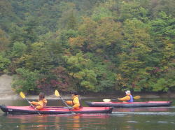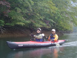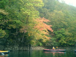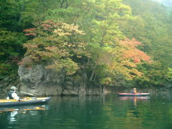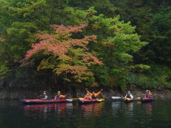 | 10/15(土) AM2:30起床。眠くてたまらないが、頑張って支度に取り掛かる。真っ暗闇の中、AM3:00自宅出発となりました。 ↓ さすがのTakaも眠くてたまらないが、せっせと運転。Shoは出発したのも良く覚えてないくらい、速攻爆睡。 ↓ AM6:30過ぎにみなかみ町に入った。とりあえずいつものセブンイレブンで朝食購入。 水紀行館へ移動して、朝食を取りました。外はどしゃぶりの雨。 こんな天気で大丈夫かなぁと不安だらけのSho。Takaは相変わらず平然としている。 携帯電話で天気予報を確認すると、雨の確率が昨晩より上がっている。 午前中80%→午後70%→夕方18:00以降100%となっていたのでした。 ↓ AM7:00過ぎ、とりあえず待ち合わせ場所のアウトドアステーションへ到着。 7:20頃、HIDEさんがやって来たので、合流して一緒に現地へ向かいました。 ↓ 現地駐車場へ到着し、外へ出てみると・・・やっぱり大雨。さすがの晴れ男Takaも今日は無理そう! Shoは前日から天気の事が凄く気になっていて、何度もTakaに延期話を持ちかけていたのに、Takaは雨が降る気がしないの一点張り。 その言葉を信じて来てはみたものの、結局は大雨となってしまったのでした。 今ならまだ止められる!ということでTakaへの説得を試みるSho。 がっ、しかし・・・Takaの決意は固かった。渋々雨のツーリングを承諾するShoなのでした。 ↓ ひとまず全員集まって、まずはHIDEさんからご挨拶。 続いて参加メンバーの自己紹介。O原ご夫妻、N川ご夫妻、まっちゃん、Taka&Shoが順番にご挨拶。 本日は総勢8名、5艇でのツーリングとなりました。 今回のメンバーはスーパーリピーターだらけの為、みんなベテラン揃い。 遅れを取らずについて行くことを目標に頑張ろうと思うTaka&Shoなのでした。 ↓ AM9:00全員揃って、大好きな湖を漕ぎ始めたのでした。 さすがにみんな漕ぎ慣れていて、出だしから良いペースで進んで行きました。 心配していた雨の方も、気がついたらほとんど止んでいました。 寒いと思ってフリースを着込んでいたけれど、思ったほど気温も下がっておらず、漕いでたら暑くなってきました。 ↓ スタート時は紅葉らしい紅葉もなかったけれど、だんだんと漕ぎ進めて行くうちに色づいてきました。 Shoは前方に赤い実を発見!HIDEさんに聞いてみると、“ナナカマド”というらしい。 7回釜戸に入れても燃えないから、ナナカマドという名前がついたそうな・・・また1つお勉強になりました(^^) ↓ ぐんぐん進んで行くと、色んな雰囲気の紅葉を見ることができました。 全体的に真っ赤という訳ではないけれど、少しずつ色が変わってグラデーションになっているのが「紅葉先取りっ!」って感じで素敵でした。 美しく紅葉した木々の下に入ってみんなで記念撮影したり、湖面に映る景色を堪能しながらさらに漕ぎ進めて行きます。 N川奥様は1人でファルトを漕いでいましたが、みんなから遅れを取ることなく頑張って漕いでいました。 ↓ 上陸休憩も取らずに頑張って漕ぎ進めて行くと、HIDEさんが何やら発見した模様で、艇を左側の岸に着けて上陸。 HIDEさんの視線の先にあったのは、山ぶどうでした。 1房ずつ取って、各艇へ投げてくれました。早速、1粒食べてみるSho。 普通のぶどうに比べたら小さい実だったけど、酸味があってさっぱりと美味しかったです。 ジャムとかにしたら良さそうでした。Takaにも1粒あげて、残りはいつのまにかShoが完食しておりました。 朝ご飯が早かったせいもあり、結構お腹が空いていたのです(^_^;) お菓子でも持って乗れば良かったと後悔していたので、ありがたい山ブドウちゃんでした。 ↓ ちょっぴり腹ごしらえが終って少し漕いで行くと、シャンシャンと水の落ちる音がしてきました。 近づくにつれだんだんと音が大きくなり、ついにあの滝まで辿りつきました。 360度が人工物の無い大自然に加えてこの素敵な滝を見ていると、本当に心が癒されます。 滝の写真を撮ったり、ぼーっと眺めたりしてのんびりした後、ゴールまであと一息を頑張って漕いで行きました。 ↓ ゴールに近付いてくると、水の透明度も一層増し、気温も急にひんやりとしてきました。 11:30頃、見事に全員ゴールとなりました。 上陸して、早速水に手を入れてみると・・・やっぱりめちゃめちゃ冷たいです。 昨年来たのは6月でしたが、季節が違うと見える景色もまったく違います。 ↓ みんながのんびりゆったり過ごしている中、HIDEさんが昼食の準備を始めてくれました。 本日はおにぎり、けんちんうどん、おやつです。 お腹ペコペコだったので、まずはおにぎりを1口頂きます!「うっ、うまい!」 外で食べると特に美味しいというのはいつも思うのですが、今日のおにぎりは何かが違う。 Shoは食べながら、塩加減が絶妙な懐かしい母のおにぎりを思い出していたのでした。 HIDEさんに聞いてみると、やっぱり・・・今日のおにぎりはHIDEさんママお手製おにぎりとのこと! やっぱり熟練主婦のおにぎりだったのでした。 けんちんうどんの方も器一杯に