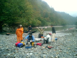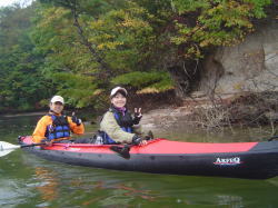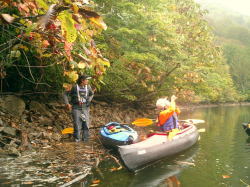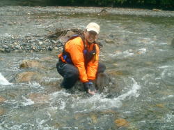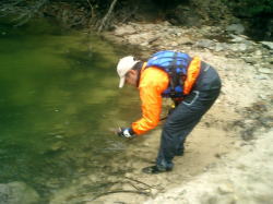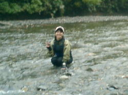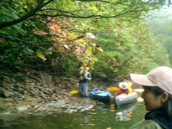 | 他にも数名いました | 水の中に紅葉発見! | みんなで記念撮影! |