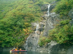 | まだ食べたい人いる? | 滝の音がしてきました | 船でしか見れない滝 |