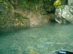 | 湖面がとろとろしてきました | 源流に近くなってきた | 水が急に澄んできます |