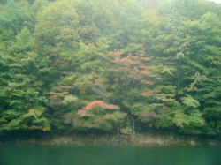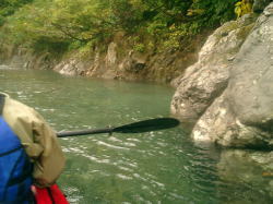 | ここが一番きれいでした | 岩肌から出てる木々も趣があります | 左岸沿いに木々をくぐって行きます |