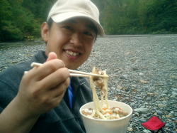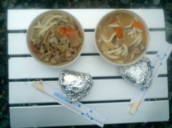 | HIDEさんがせっせと用意してくれます | けんちんうどん&愛情おにぎり | 温かくて、うまい! |