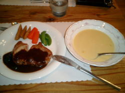 | ポークステーキ&コーンスープ | 焼き立てのチーズケーキ | 外はサクッと中はふわふわ |