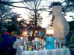 | オタヌキさん自慢のランタンを披露 | 日も落ちてきて、宴会ムード | Goma家のスペインオムレツ |
