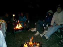 | キャンプ不慣れなゴエモン | ライトアップされた桜も素敵 | 食事も終えて、のんびり飲みモード |