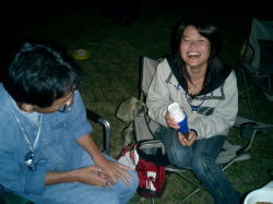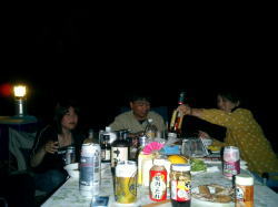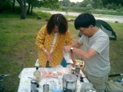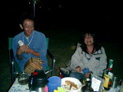 | 今日は初夏のようなお天気。13:00 宮原キャンプ場集合へ向けて、11:00頃に自宅をしゅっぱ〜つ!! ↓ 1時間ほど走行後、ShoがTakaに「ライフジャケット持ってきたよね?」と確認。すると・・・「あっ、忘れた・・・。」 そのまま引き返し、自宅へ取りに戻ることになった。(T_T) 次回からはちゃんと持ち物リストのチェックを怠らないようにしようと誓うのであった。 ↓ 結局この往復に時間を取られることになり、現地へ到着したのは16:00頃。 13:00頃から来ていたForeペアとGoma夫妻はのんびりゆったり過ごしていました。 6月からの鮎釣り解禁前の那珂川ということもあり、宮原キャンプ場はほとんどカヌーイストでいっぱい。 カヌーを終えて戻ってきた人をふと見ると、なんと玉淀でお会いしたゴステロさんご家族。更にはサタズさんにもバッタリ出会いました。 今日は“つっぺり隊”のツアーで来ているということで、お隣では大人数の賑やかなキャンプが催されていた。 ↓ 17:00頃にGoma夫妻とEriちゃんが近くの“やまびこの湯”へ行った。Yan様と我が家はお留守番。 Shoは明るいうちに夕飯の支度。今日はGomaさんがメイン料理を作ってくれるので、オードブル程度の手抜き料理。 Takaはテントの設営をした。お留守番のアトムはあまりにも淋しそうな様子。 見かねた優しいYan様はアトムを抱っこして慰めていたのでした。 ↓ お風呂チームも戻ってきて、みんな食事の支度に取り掛かる。 Goma夫妻は予告通り“手羽先の甘辛煮”を作ってくれた。 ダッチオーブンで手羽先を揚げていたので、外はカリッと中は柔らかく仕上がっていた。 Yan様は本日ちょいと体調不良の為お料理は出来ないと言っていたものの、お刺身とイカ焼きなどを並べてくれた。 我が家は最近すっかり重宝している炉端大将で焼き鳥。 ↓ そんなこんなでそれぞれ支度をしていたその時、暗闇の中からGomaさんの愛車の横にサーッとカヌーを載せた車が止まった。 あれっ!ん?えっ?あぁ〜っ!Jackさんだぁ♪あまりにも突然の出来事に皆びっくり! ニコニコ笑顔でお酒を持ってJackさんが車から降りてきたのでした。 明日は運動会があるので来れないと聞いていたのだったが、運動会の方は奥様にお任せして仕事を終えて来てくれた。 なんとも嬉しいサプライズに全員大喜びの瞬間でした。 ↓ 途中でお隣のサタズさんから火鍋の差し入れがを頂いた。こちらは本家の火鍋だけあって、辛さが半端じゃない。 辛いというよりは、口が痛い!山椒っぽいものや、本格的な香辛料が入っていたようだった。 でもこの辛さが病みつきになって、結局みんなでお鍋を空にしてしまったのでした。サタズさんごちそう様でしたぁ。 ↓ そして楽しい宴会のはじまりはじまり〜。今日の話題は“チーム名”。 そう、Yan様&Eriちゃんが作り上げたこの仲間も、いよいよチームとして動き出そうということになった。 そうなるとまずはチーム名!車に貼るステッカーやTシャツも作ろうと思案中。 1週間ほど前からみんなでチーム名の案を出し合っているところだったので、今日は決定しようと話合いが始まる。 Eriちゃん考案のパドル+アドレナリンで“パドレナリン”というのはTaka&Shoもお気に入り。 どちらかというとお笑い路線賛成組である。 対してGomaさん考案のSC4(Silver Creek Canoeing&Camping Club)。 こちらは正統派カヌーイストの真面目路線。 真っ向対決している最中に、福島チーム代表のJackさんにもご意見を伺ってみることにした。 JackさんはMont-Bellをもじって、Mont-Dellがいいと・・・。福島チームならではのエッチ路線。まったく、もう!(^_^;) う〜ん、なかなか決まらない。「パドレナリンになったら退会するぅ〜」と唸るGomaさん。 結局、今日決めなくてもいいじゃないということになって、話し合い終了。まぁ、今年中に決まればいいかっ! ↓ 小腹が空いてきたところで、Gomaさんが“都会風うどん”を作ってくれた。 本来は“田舎風うどん”を作ってくれる予定だったが、きのこ全般が駄目なEriちゃんの為に、シティーうどんに変更してくれた。 体が温まって、とっても美味でした。 ↓ 一段落したところで、サタズさんのいる“つっぺり隊”のところへ火鍋のお鍋を返却しに行くことになった。 がっ、我らが代表Eriちゃんが1人で行くのに躊躇し始めた。 そう、いつも元気なこのお姉さん。意外と初対面の人にはドキドキして上手く話し掛けられないのである。(Takaとそっくり!) そこで急遽、Kunko(長女)+Eri(次女)+Shoko(三女)の“お笑い三姉妹”を結成! 三姉妹でつっぺり隊へ乗り込んで、ご挨拶に行くことになった。 ここで頼りになったのが、やはり長女のKunko様。大所帯のつっぺり隊にひるむ事無く、「こんばんは〜!」と入っていった。 その横で意味も無くハイテンションでパフォーマンスを繰り広げる次女Eriちゃん。彼女のこのパフォーマンスは照れ隠しなのである。 その絡みようのない状況にひきつった笑顔で呆然と立ち尽くす三女Sho。つっぺり隊の皆様も笑っていいのかどうか???の状