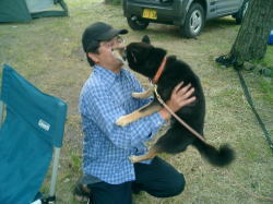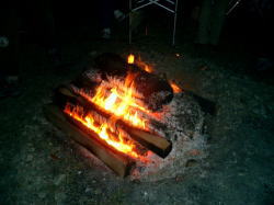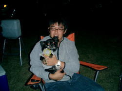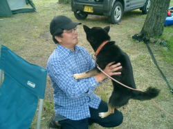 | 開放感にご機嫌のゴエモン | 焚火に火が着きました | 予告無く、Jackさん登場♪ |