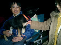 | ゆっくりお酒を楽しむJackさん | Eriちゃんに抱っこしてもらうゴエモン | Gomaさんに抱っこしてもらうゴエモン |