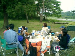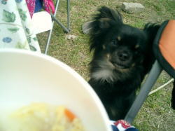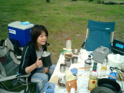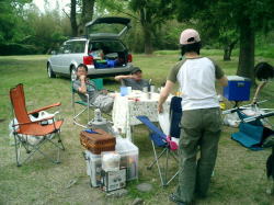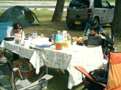 | 翌朝6:30頃起床し、外へ出てみると・・・なんとも無残。カラスに生ゴミを荒らされていました。まぁ、仕方ないかととりあえず片付ける。 気を取り直して朝食の準備。EriちゃんコーヒーとShoの簡単雑炊、それにGomaさんのシティーうどん。 キャンプの朝の涼しげな気持ちの良い時間を過ごしました。 ↓ 昨日の天気予報では今日のお天気は曇りの予定だったのに、だんだんと晴れて暑くなってきた。 みんなも身支度を完了し、いよいよ川下り。 ↓ 9:00頃に男性陣はゴール地点に車を移動する為に、4台とも出発した。 三姉妹はお留守番。すると、R石さんが慌てて近寄ってきた。 R石氏:「あれ、まさか宮原から下る気?」 Eri:「えっ、違うの?」 R石氏:「昨日、下野大橋から下るっていったじゃない。」 Eri:「え〜っ、聞いてないよぉ〜!」 R石氏:「俺はちゃんと言ったよ!」 Eri:「あ〜っ、“下野大橋”を“下のお話”って聞き間違えちゃったから、肝心なこと聞いてなかったぁ〜」(;_;) ↓ 慌ててShoがTakaに電話。とりあえず状況を伝えた。が、男性陣で話し合った結果、結局宮原から下ることになった。 R石氏:「戻って来ないの?宮原から下ることにしたの?」 Eri:「うん・・・。」 R石氏:「宮原から下ったら、ポーテージの連続で大変だよ!俺はもう知らないからなぁ(笑)」 Eri:「でもでも、お昼ご飯は合流して一緒に食べましょうよ?」 R石氏:「無理!間違い無く君達の方が遅いから、待っていられない。まぁ、頑張ってね。(@o@)」 Eri:エーン(T_T) すっかりR石さんに見放されてしまったのでした・・・。 ↓ 気を取り直して、男性陣を待つ三姉妹。 昨日Jackさんが買ってきてくれたおいしいお菓子がちょうど3つ。 3人で美味しく頂いたのでした。 ↓ 10時過ぎに男性陣が戻ってきたので準備をし、10:30頃に宮原からしゅっぱ〜つ! Yan&Eri+クッキー(キャンパー)、Goma&Kunko+アトム(ボイジャー)、Jack(ボイジャー)、Taka+ゴエモン(トライオン)、 Sho(トライオン)にそれぞれ乗り込みました。 先ずはキャンパーが先頭を行った。いきなりの瀬だったが、頑張って乗り切った。その後にみんなも続いて行く。 少し漕いだところで、昨年川下りでお世話になった「カッパ天国」の皆さんが瀬遊びをしていた。 こんにちは〜!と声をかけると、ちゃんと覚えていてくれて「よぉ、久しぶり!また時間があったら遊びに来て下さいね〜。」と言ってくれた。 「またお邪魔しますね〜。」と言ってとりあえず通り過ぎた。 ↓ それにしても今日の那珂川は水が少なく、流れもほとんど無い。少し漕いではポーテージの連続。 多少浅くてもキャンパーとトライオンは何とか強引に漕ぎ進めることが出来たりしたが、ボイジャーは艇の底を傷めるので ポーテージせざるを得ない状況が続いた。 ポリ艇でさえもポーテージが余儀なくされた場所もあり、重い艇を引きずりながら歩いていたところで、Shoは派手に転んで川底にスネを強打した。 もの凄く痛かった(;_;)でも何とか浅瀬を乗り切ったのであった。 出発してから約1時間半後の12:00にようやく下野大橋まで辿り着いた。R石さんの言った通り、ここまでは本当に大変だった。 ポーテージの多さは勿論のこと、大して流れも無いので漕がないとさっぱり進まない。 ↓ 下野大橋を過ぎて30分くらいしたところで、途中の岸に着けて昼食を取ることにした。 はぁ〜、全員ホッと一息。お湯を沸かしてカップ麺をすすった。 天気も良すぎるくらいで、座っているとジリジリと日焼けしているのが分かるくらいだった。 約1時間ほどのんびりしたところで、後半戦に向けて出発。 ↓ 後半は比較的水深があり、川の流れもあったので快適に下ることができた。 途中の瀬での水しぶきもなかなか気持ち良かった。 川の様子にあまり気を取られる事も無くなったので、ようやく他の艇を見渡す余裕も出てきた。 各艇の犬達も楽しそう!アトムは嬉しくて笑顔連発。 クッキーは今年初の川下りが相当嬉しかったようでキャンパーの先端に胸を張って乗っていて、途中自ら川へ飛び込んだりして楽しんでいた。 我が家のゴエモンはと言えば・・・ポカポカ陽気で熟睡しておりました。(^_^;) 景色と川をのんびり楽しんでいるうちに、15:30頃に大瀬に無事到着しました。 ガンガン漕いで、ポーテージしてとこんなに大変な那珂川は始めてだったけど、良い運動になったし楽しかった。 ↓ カヌーを積んで大瀬から宮原キャンプ場へ移動。すると、テーブル周りがまたカラスに荒らされていた。 犬の餌のビニール袋まで破っていたのには、本当に驚いた。カラスには気をつけましょう! ↓ 各自着替えを済ませて、のんびりと過ごす。その後、Gomaご夫妻が一足お先に帰宅していきました。 それから1時間くらいのんびりしていると、何だか雲行きが怪しい。 と思ったら、パラパラと雨が降ってきた。慌ててみんなでキャンプ道具を撤収した。 そして雨に追われるかのように、次回の約束をして解散となりました。 今回の川下りは本当に疲れた。ここまで漕ぎ