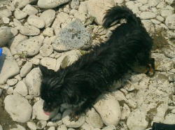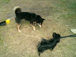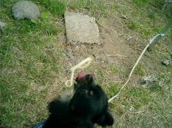 | 日干し中のゴエモン | はぁ〜、疲れたねぇ | ゴエモンを抱っこするSho |