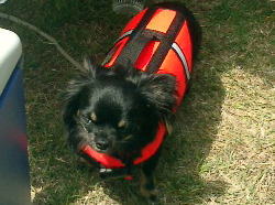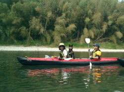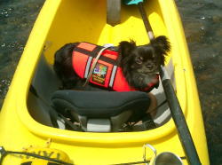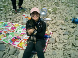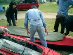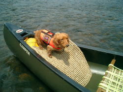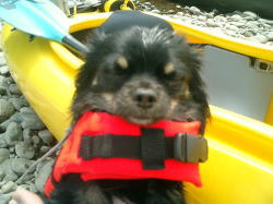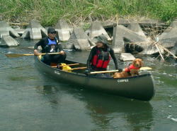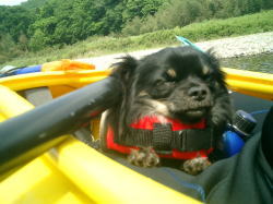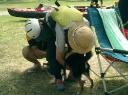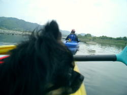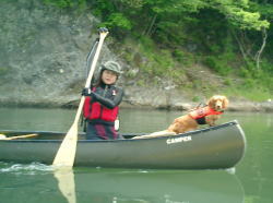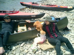 | クッキー久々にカヌーに乗れて良かったね | 川下り後、のんびりと後片付け | 久々の川下りでクッキーも疲れました |