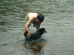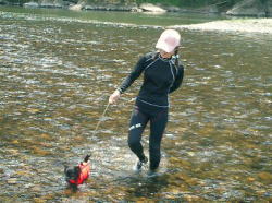 | ゴエモン川に入ります | 抱っこ〜 | 水中お散歩 |