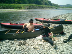| 久々にカヌーを楽しむKunkoさん | 疲れたね〜、喉乾いたね〜 | Yan様のビールを横取りするEriちゃん |