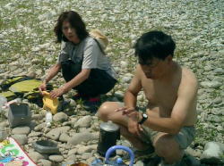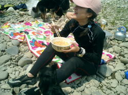 | 暑くてGomaさんも脱いじゃいました | カップらーめんも外だと一味違う | 川で行水したゴエモン |