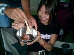 | ここのメンバーは男性陣が良く動きます | エビの塩焼き | ウィンナー貰って嬉しそうなEriちゃん |