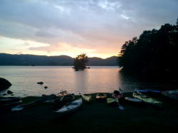 | 7/23(土)AM中にレイクランドヒバラ集合! 今回はレイクランドヒバラのキャンパー向けカヌー体験のお手伝い。岩ちゃんの企画でボランティア参加となりました。 メンバーは、岩ちゃん、Yan様&Eriちゃん+クッキー、Jackさん、アクアさん、Gomaさん、Saharaさんご夫妻、Zenさん、助手さん、Taka&Shoの総勢12名。 ↓ とりあえず全員集合したところで、岩ちゃんからご挨拶。 「今日と明日の2日間、皆さん宜しくお願いします!」ということで、みんなも宜しくお願いしま〜す♪ ↓ まずは腹ごしらえということで、各自昼食の支度。 我が家はカップ麺をと思っていたら、岩ちゃんがパスタを作ってくれるというので、お言葉に甘えてパスタを頂く事になりました。 パスタは“たらこスパゲティ”と“ナポリタン”の2種類。どちらもとっても美味でした(^^) ↓ お腹もいっぱいになったところで、それぞれカヌー支度を開始。みんなが持ち寄った色とりどりのカヌー達が、水辺に並んだのでした。 カヌー体験のスタート時間まで少し時間があったので、とりあえずボランティア陣が持ち寄った艇を楽しみました。 岩ちゃんがZenさんの艇に乗って、ちょっと漕ぎ進んだところで・・・ドボンッ♪という沈劇もあり、なかなか楽しい時間を過ごすことができました。 ↓ 14:00になって、いよいよカヌー体験教室がスタート! 予想では参加者よりボランティアの方が人数多いんじゃないかと思っていたのですが、結構たくさんのご家族の方が参加してくれました。 幼稚園〜小学生の子供達にご父兄の皆様という年齢に関係無く幅広い顔ぶれでした。 まずは、岩ちゃんから参加の皆様へご挨拶。そしてパドルの漕ぎ方について簡単に説明が行われました。 説明終了後、いよいよカヌー体験の始まり始まり〜。 子供達は自分の乗りたい艇のところへ行き、ボランティアに補助をしてもらいながら漕ぎ出して行きました。 最初は全体的に恐る恐る漕いでいる感じでしたが、ちょっと練習しただけでスイスイと楽しげに漕いでいました。 ご父兄の方々より、子供達の方がめきめきと上達している感じです! ダンデム艇に乗っている子供も最初はパドリングのタイミングが前後バラバラだったのに、1,2、1,2と声かけをしてだんだん揃ってきました。 コツを掴んだ子供達は色々と艇を変えて楽しんでいました。 約2時間ほどのカヌー体験でしたが、たくさんの子供達の笑顔を見てとりあえず本日は終了となりました。 ※ここでアクアさんはお仕事の為、一旦中抜けとなりました。 ↓ カヌー体験も終了したところで、まずはひとっ風呂浴びてくることに♪ 女性陣は本日3人で入浴。美人四姉妹の次女Saharaママ、三女Eriちゃん、四女Shoで一緒に入りました。 お風呂の湯加減もちょうど良くて、キャッキャとハシャギながらのんびり楽しい入浴時間となったのでした。 ※長女のKunko姉は急用の為、今回は参加ならずでした、残念(;_;) ごまをさ〜ん、次回は美人四姉妹を揃えて下さいませ。もちろんアトムもね♪ ↓ お風呂でさっぱりした後、いよいよ宴会の準備。みんなで手分けして、夕飯の支度となりましたぁ〜。 枝豆、チーズ乗せクラッカー、エビの塩焼き、岩魚の塩焼き、ローストビーフ、棒棒鶏、炭火焼肉等など。 そしてみんなでかんぱ〜い!!美味しいおつまみと楽しいお喋りで、いつもながら楽しい宴会です。 今回はメンバーが久しぶりにほぼ全員集合したこともあり、とっても楽しいひと時でした。 ↓ 途中、レイクランドのオーナーから、生ビール、にしん酢漬け、ジュンサイの差し入れがありました。 生ビールはキンキンに冷えていて、ビール好きにはたまらなかったようです。TakaなんてShoの分まで飲んでましたから。 ジュンサイもとっても新鮮で、ゼラチン状の部分がぷりぷり♪ Eriちゃんはジュンサイを見て、「これなぁに?」 えっ、知らないの?と思い、ついつい「蛙の卵だよ。」とおちょくってみるSho。直ぐにウソウソ冗談と言ったものの・・・。 今度はSaharaママが「これ蛙の卵で、中から手足が出てくるんだよ〜。」とまるでShoと申し合わせたかのように、同じような嘘をついた。 今まで一度も見たことも食べた事も無く、その存在自体を知らないと言い張るEriちゃんは、すっかり蛙の卵が頭から離れなくなってしまったのでした。 それでもみんなに美味しいから食べてごらんと薦められ、とりあえず一口食べてみるEriちゃん。 Eriちゃん:「いやぁ〜、なんかジュゴンって気持ちわる〜い。」 その他一同:「えっ!“ジュゴン?”(・_・)」 どうしたら“ジュンサイ”→“ジュゴン”になっちゃうのか???でしたが、実にEriちゃんらしい。 間違いとは分かっていても、我らがアイドルEriちゃんを尊重するのがこの集まりの優しい面々。 仲間内でのジュンサイの呼び名は、ジュゴンとなってしまったのでした。(^^;) ≪学習しよう!≫ ※ジュンサイ・・・独特のヌメリとツルリとしたのどごし、高級で繊細な味として珍重されるこの「じゅんさい」スイレン科の多