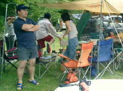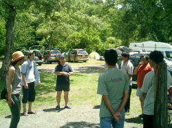 | キャンプ地からの景色 | 腕を組んで張り切る岩ちゃん | みんなで岩ちゃんのお話を聞きます |