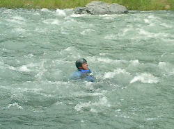 | Yan様が流れ | Shoは岩でお尻を強打 | レスキュー講習初参加のGomaさん |