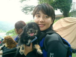 | 7/29(金)明日の朝出発の予定だったが・・・。渋滞に巻き込まれるといけない!ということで、急遽今夜出発。 コンビニで朝食を購入し、AM1:30頃に柚木に到着。 眠くてたまらなかったので、テントを張って、すぐに就寝となった。 7/30(土)7:00過ぎに暑くて起床。 すると・・・テントの入り口付近に置いていた朝食の袋を見ると、昨日購入した巻き寿司1本とメロンパン1個が無くなっていた(T_T) カラスの気配はほとんど無かったので、野良猫の仕業か・・・? 仕方なく、Takaがコンビニへ行き、メロンパンを買ってきた。 ↓ 柚木で朝食を取っていると、9:30頃にGoma夫妻+アトムが到着。 他のみんなが来るまで、のんびり過ごしていると、R石さんより電話が入った。 集合場所が違ったらしいので、テントを撤収し、慌てて移動となりました(^^;) ↓ 本日のメンバーはHoriさんご夫妻+アンジュ、R石さん、Senoさん、K野さん、Yan様&Eriちゃん+クッキー、Goma夫妻+アトム、Taka&Sho+ゴエモン。 ↓ まずはテントやタープの設営に取り掛かる。キャンプ地へ荷物を運びながらふと川の様子をみると・・・結構激しい流れ。 こんなところでレスキュー講習やるのかなぁ???と不安になりながらキャンプの準備をするのでした。 ↓ テント設営も完了し、着替えて全員集合。 まずはHoriさんとR石さんからセルフレスキューとスローロープで救助する方法について、資料を見ながら説明。 ≪セルフレスキュー訓練の流れ≫ 1.川に入って流される。仰向けになり、頭を上流に向け、両手を挙げて、足は少し曲げた状態で水面に出す。 ↓ 2.ディフェンシブ・スイミング・・・頭と両足を水面に出した状態で、両手で水をかきながら泳ぐ。 ↓ 3.アグレッシブ・スイミング・・・岸が近いところにきたら、岸へ向かって斜め45度にクロールで泳ぐ。 ≪スローロープレスキュー訓練の流れ≫ 1.川に入って流される。仰向けになり、頭を上流に向け、両手を挙げて、足は少し曲げた状態で水面に出す。 ↓ 2.流されている人は岸にいる人に向かって、「ロープ!」と声を掛ける。 岸にいる人も投げる前に必ず「ロープ!」と声をかける。 ↓ 3.ロープは流されている人より奥に届くように投げる。 ↓ 4.流されている人はロープを掴んだら、右岸に着く時は左側、左岸に着く時は右側にロープを持つ。 ↓ 5.岸でロープを持っている人は無理に引っ張らず、川の流れを利用して自然に岸に誘導していくようにする。 但し、着地点が危険と判断した場合は、安全な岸へ着くように引っ張ってあげる。 ※せっかくHoriさんに頂いた我が家のレスキュー資料が見当たりません(;_;)風で飛ばされちゃったのかしら? ↓ 説明が終ったところで、いよいよ実践訓練開始!みんなで川へ集合しました。 Hori奥様とGoma奥様はカメラマンで参加です。 ↓ まずはセルフレスキューの訓練!R石さんが流れ方のお手本を見せてくれました。さすがに動きに無駄が無い! R石さんに続いて、みんなもチャレンジ! 何とか全員無事に自力で岸まで辿り着きましたが、やはり頭では分かっていても実際に本流で流されていると、なかなか思うような体制は取れないものだなぁと実感。一番大切なのは、流されてはいても、いかに冷静になれるかということなのかもしれません。 ↓ 次はスローロープによるレスキュー訓練!順番に1人ずつ流されて、3個所くらいにロープを持った人達が待った。 1人目失敗したら、2人目、3人目という感じでロープが投げられた。 ロープを投げるという行為は思ったより難しく、1人目で見事に届くことはほとんど無かった。 焦って次から次へと投げても、流れている人も混乱してしまう。 やはりこの場合もお互いが冷静になって、声を掛け合ってロープレスキューを行うことが大切だと思ったのでした。 スローロープはいつも持ってはいるものの、普段あまり投げる事は無い。 上手く投げられなければ、持っていても何の意味も無いので、日頃からの練習が必要です。 ↓ ロープレスキューが終ったところで、Yan様とSenoさんで食事の買出しに行ってきてくれました。お昼ご飯は豚肉の生姜焼き! Yan様がたっぷりの豚肉を中華鍋でささっと調理し、ごはんの上にキャベツとお肉をのせて、生姜焼き丼が完成。 美味しくて、ペロッと平らげてしまいました。 ↓ 昼食後、R石さんによるカヤック講習会がスタート。フェリーグライドの講習ということで、1人ずつやってみた。 最初は恐る恐るだったけど、だんだんと練習を重ねていくうちにみんな割と余裕でできるようになりました。 みんなでちょっと流れのあるところを、往復しながら漕ぐ練習を続けていた。 ↓ Shoも上流に漕いでから方向転換して下流へ向かってみようと、ちょっと漕ぎ進めていた。 とっ、その時。えっ!何?っていうくらいの勢いで、撃沈してしまったのでした。 JIBを入手してから初めての沈。左側へ傾いてクルッと沈したので、とりあえずスプレースカートを外した。 わりとすんなり外れたので、脱出しようとしたら、なかなか左